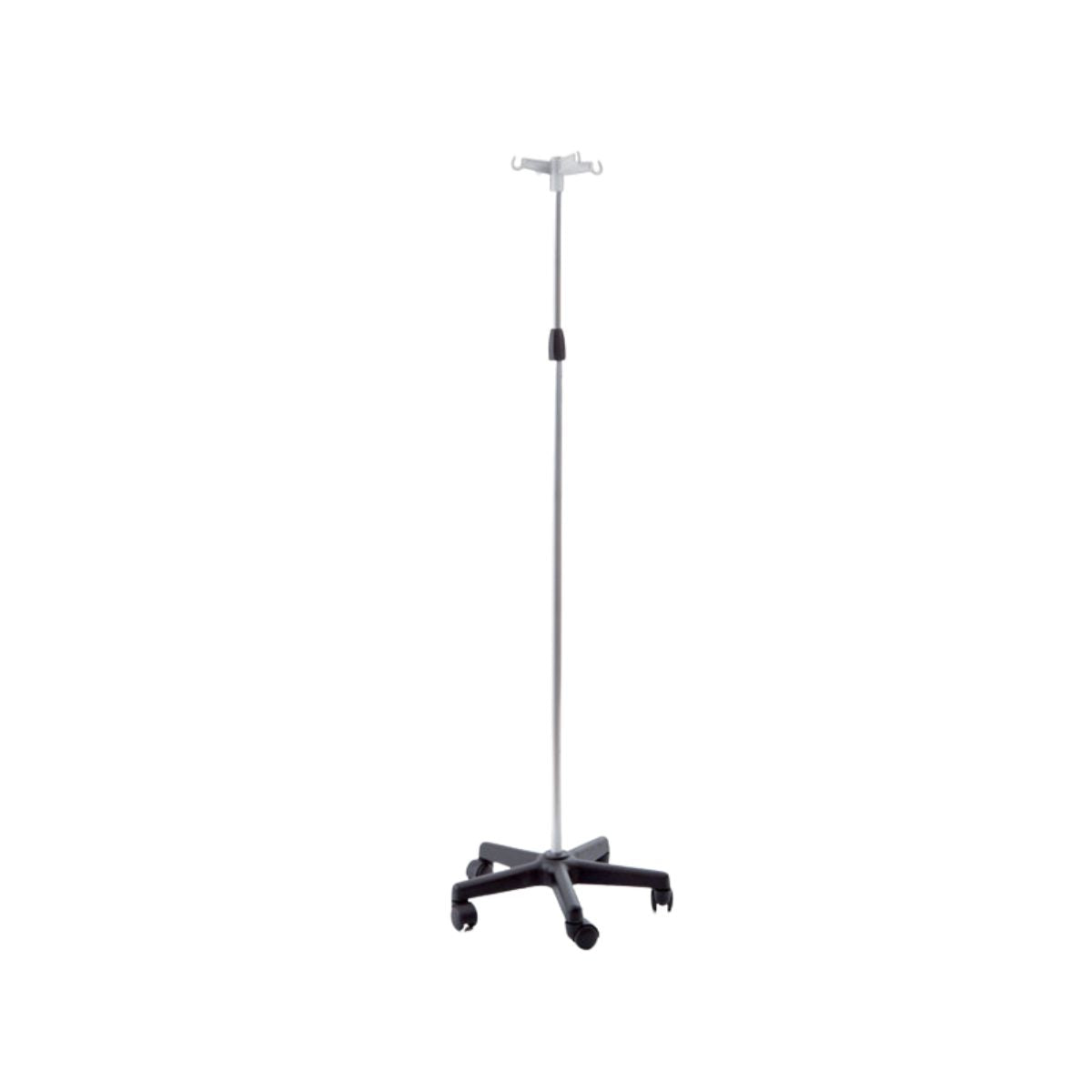 Piantana per ipodermoclisi con base in plastica a 5 razze su ruote. Asta portaflebo in alluminio a 4 ganci. Regolabile in altezza. Moretti MI433