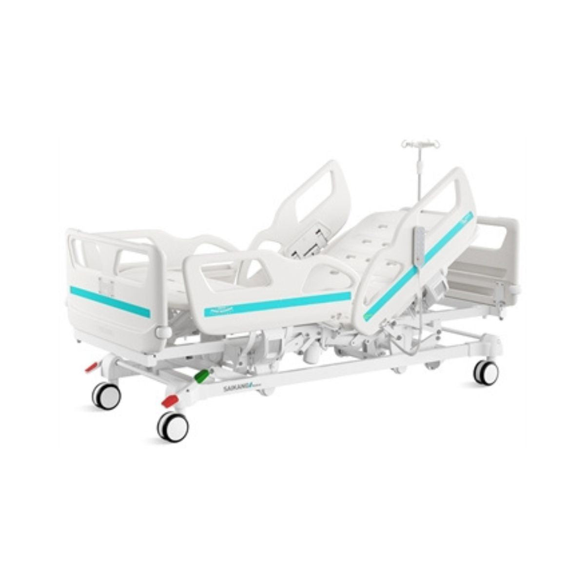 Letto degenza elettrico con piattaforma in PP integrata e motore elettrico per facilitare i movimenti delle sezioni del letto.