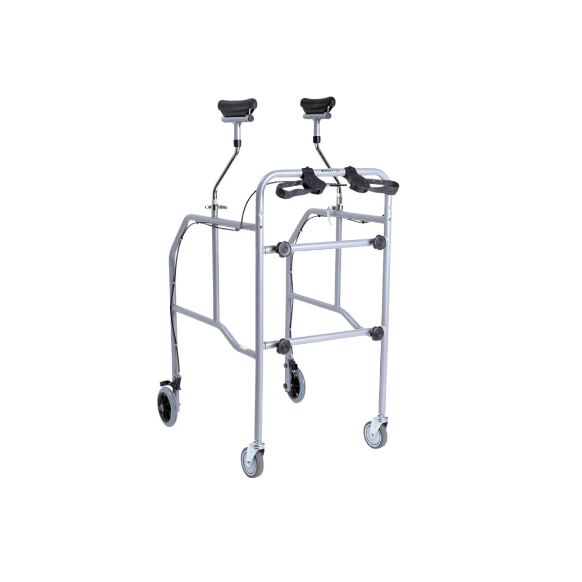 Deambulatore pieghevole con appoggio ascellare in acciaio verniciato. Girello per anziani e disabili con supporto regolabile in altezza. Moretti RP755F.