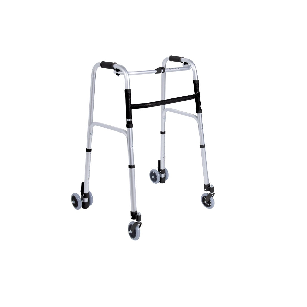 Deambulatore pieghevole costruito in alluminio anodizzato leggero con manopole anatomiche,