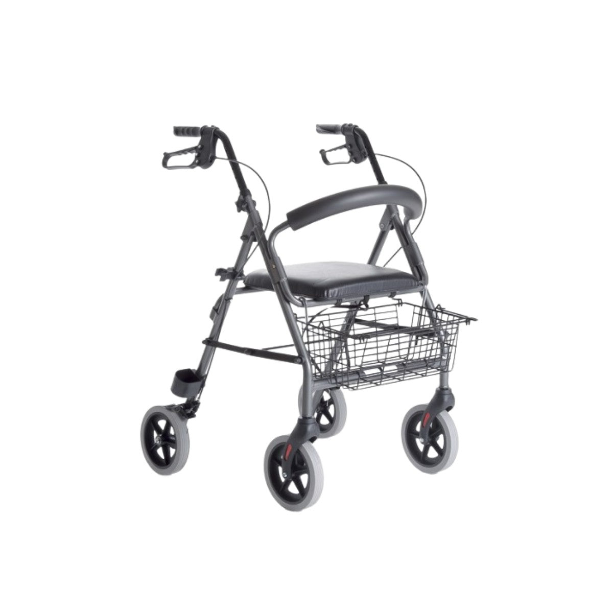 Deambulatore per anziani superleggero con seduta imbottita. Rollator pieghevole in alluminio con freni sulle ruote posteriori. Moretti mod. Atlante RP520
