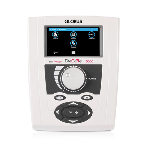 Il dispositivo per la tecarterapia professionale di Globus mod. Diacare 5000 è compatto, leggero e facile da usare.