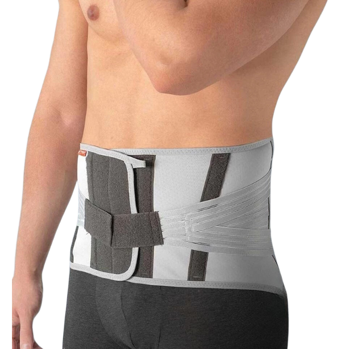 Il busto ortopedico elastico basso CARBONLITE 90 è un dispositivo medico progettato per la stabilizzazione e lo scarico del rachide lombare, indicato in caso di lombalgie, discopatie, traumi lievi e nel decorso post-operatorio.