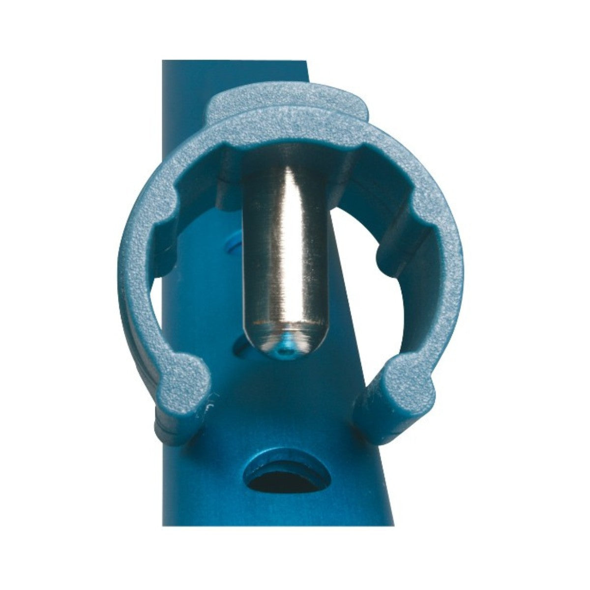 Il pomello rifrangente anteriore aumenta la sicurezza durante gli spostamenti in ambienti poco illuminati, mentre il sistema di regolazione con clip consente un facile adattamento all’altezza dell’utente.
