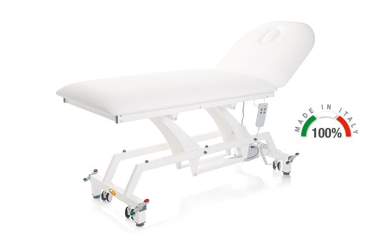 Dotato di portarotolo incluso, schienale regolabile elettricamente e ruote con sistema di bloccaggio, garantisce la massima praticità d’uso e sicurezza in ogni situazione clinica.