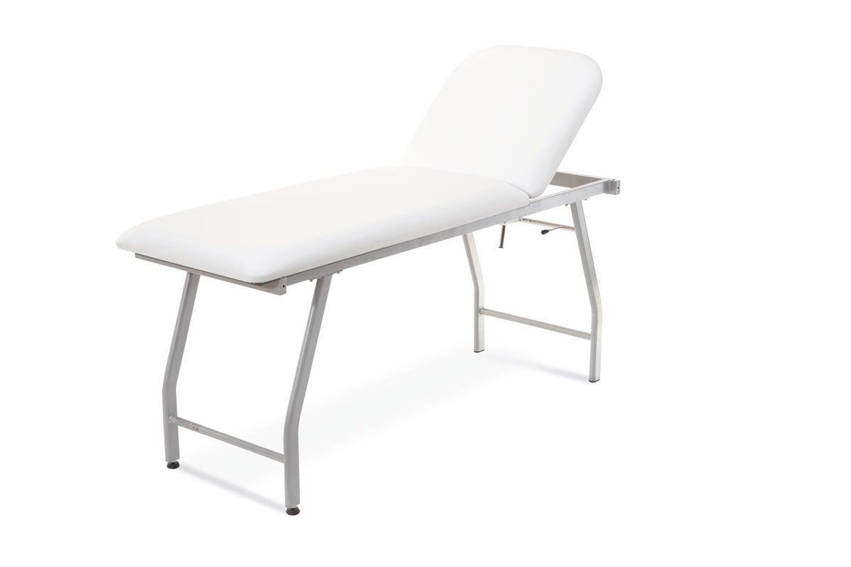 La struttura in acciaio verniciato garantisce grande stabilità e durata nel tempo, mentre lo schienale regolabile e il rivestimento in similpelle lavabile e autoestinguente assicurano comfort per il paziente e praticità per il professionista.