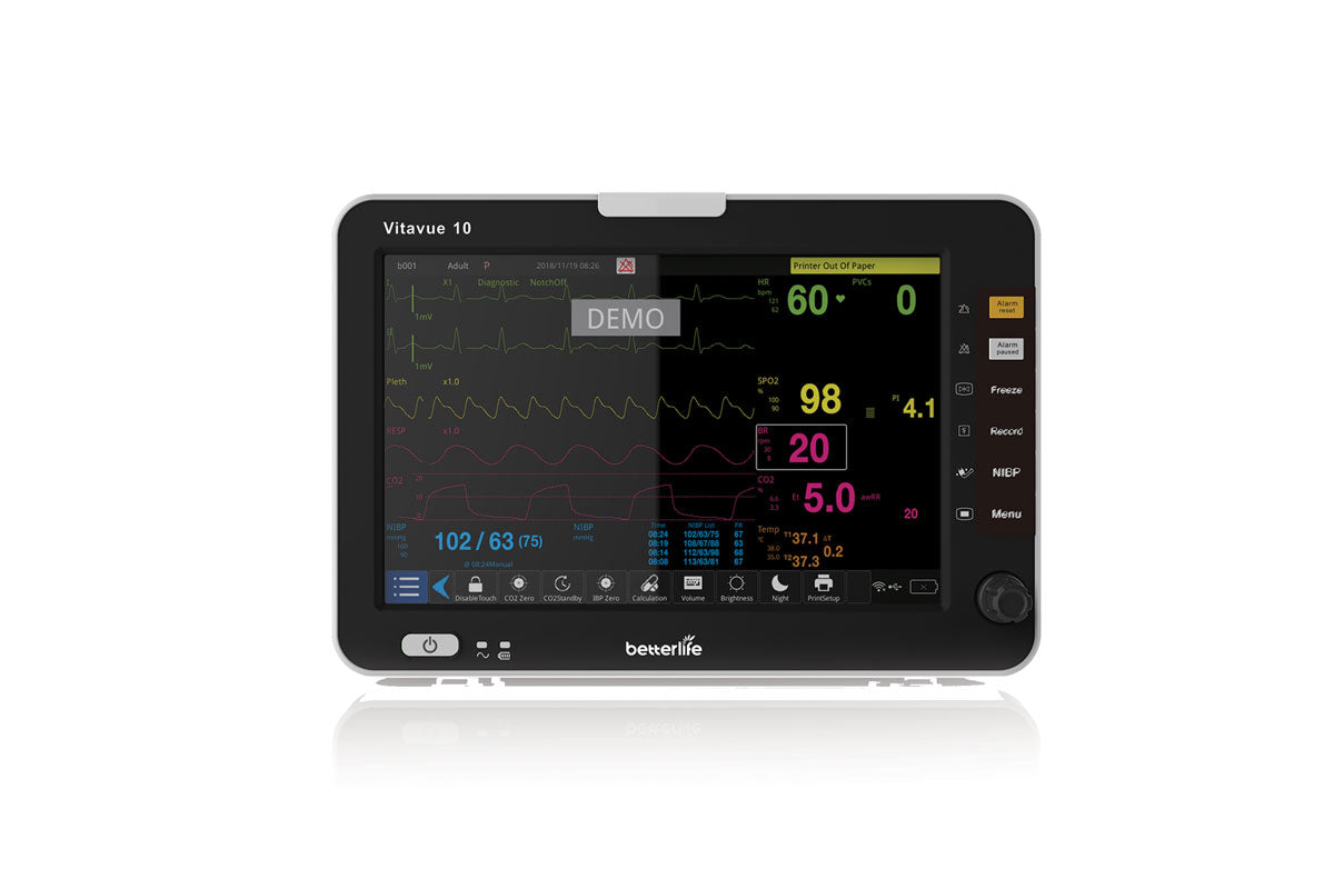 Monitor paziente con display da 10″ touch screen - ECG 3-5 canali, RESP, SpO2, NIBP, PR, 2-TEMP - Moretti Vitavue-10
